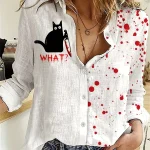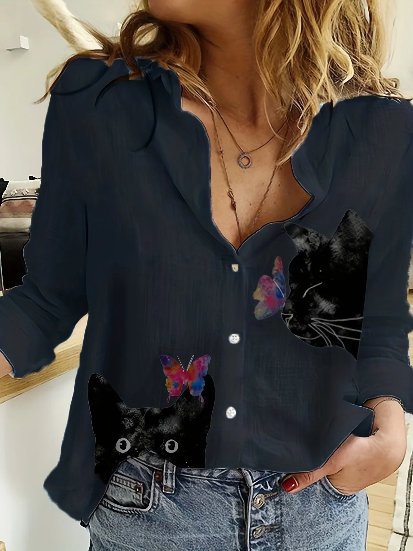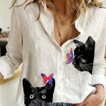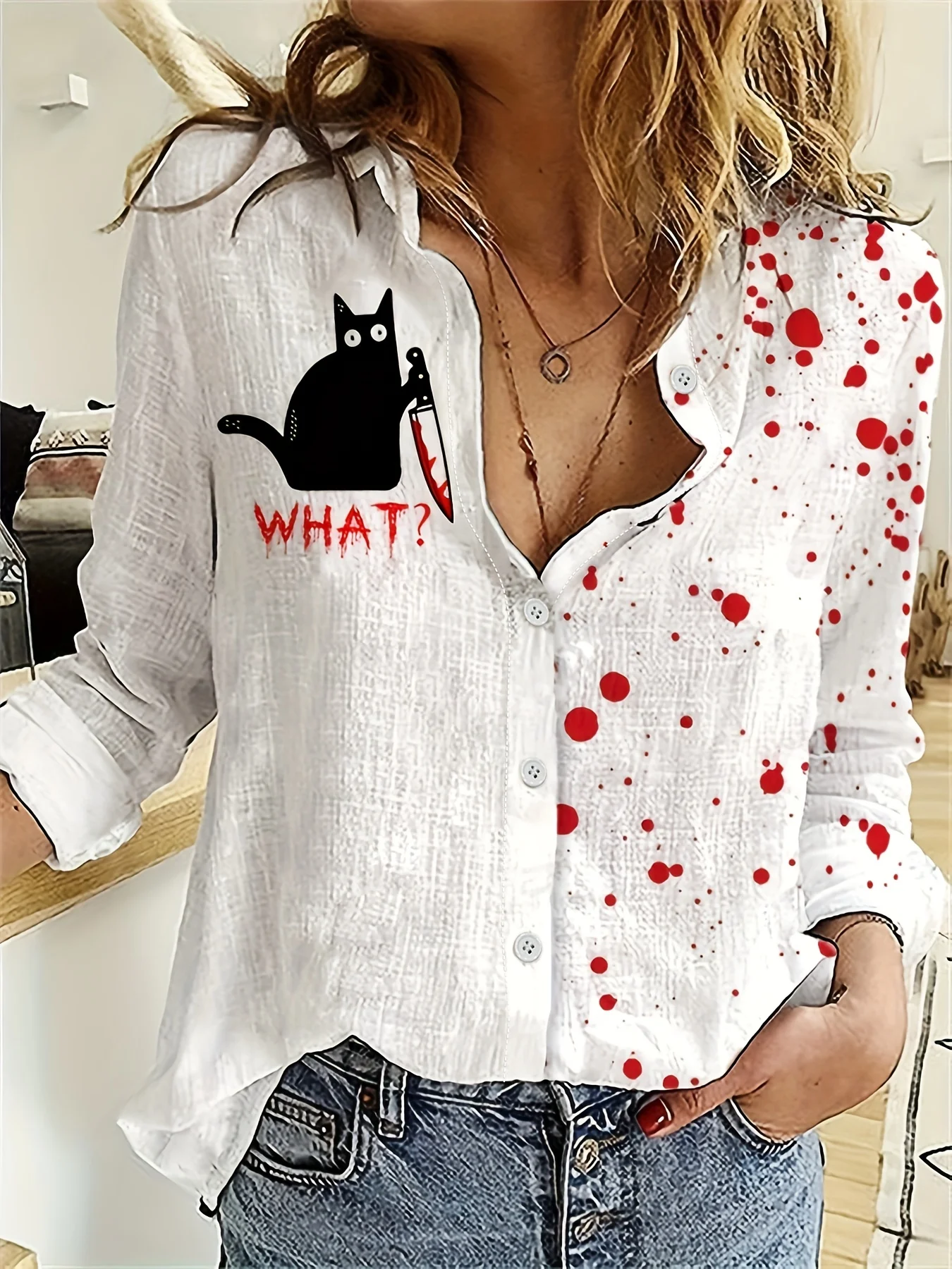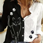 Fashion Design Patchwork Long Sleeve Cat Shirt
