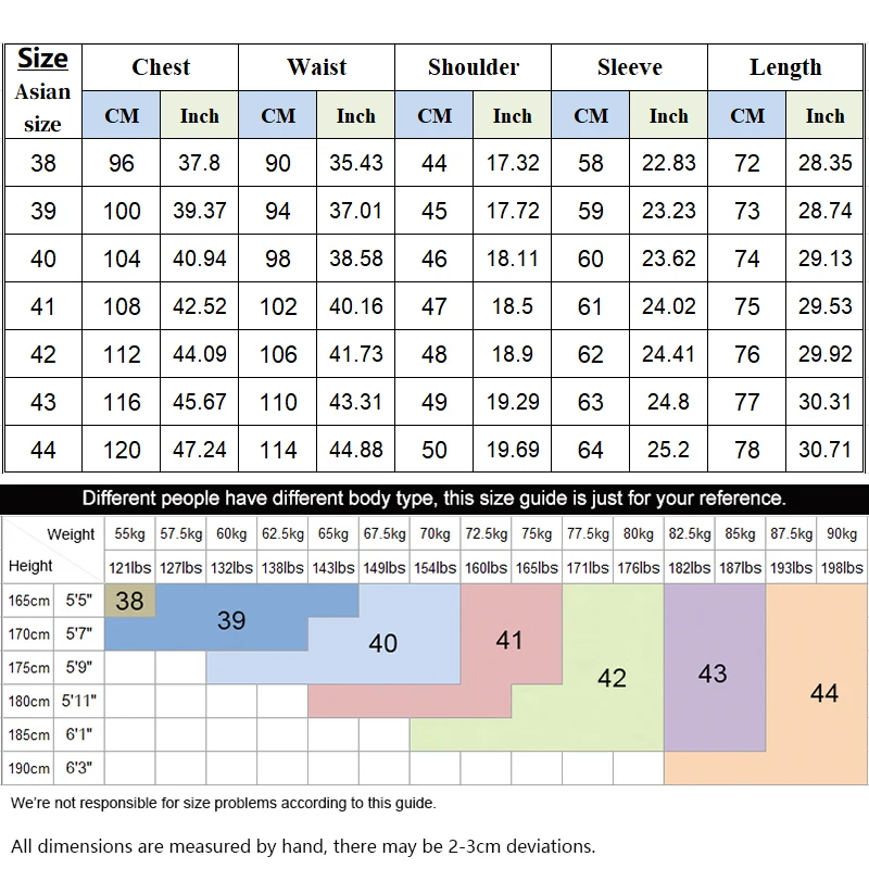 size_info: {"sizeInfoList":[{"length":{"cm":"155~160 cm 50~60 kg","inch":"155~160 cm 50~60 kg"},"size":"38","vid":-1},{"length":{"cm":"160~165 cm 55~65 kg","inch":"160~165 cm 55~65 kg"},"size":"39","vid":-2},{"length":{"cm":"165~170 cm 60~70 kg","inch":"165~170 cm 60~70 kg"},"size":"40","vid":-3},{"length":{"cm":"170~175 cm 65~75 kg","inch":"170~175 cm 65~75 kg"},"size":"41","vid":-4},{"length":{"cm":"175~180 cm 75~80 kg","inch":"175~180 cm 75~80 kg"},"size":"42","vid":-5},{"length":{"cm":"180~185 cm 80~85 kg","inch":"180~185 cm 80~85 kg"},"size":"43","vid":-6},{"length":{"cm":"182~188 cm 85~90 kg","inch":"182~188 cm 85~90 kg"},"size":"44","vid":-7}]}