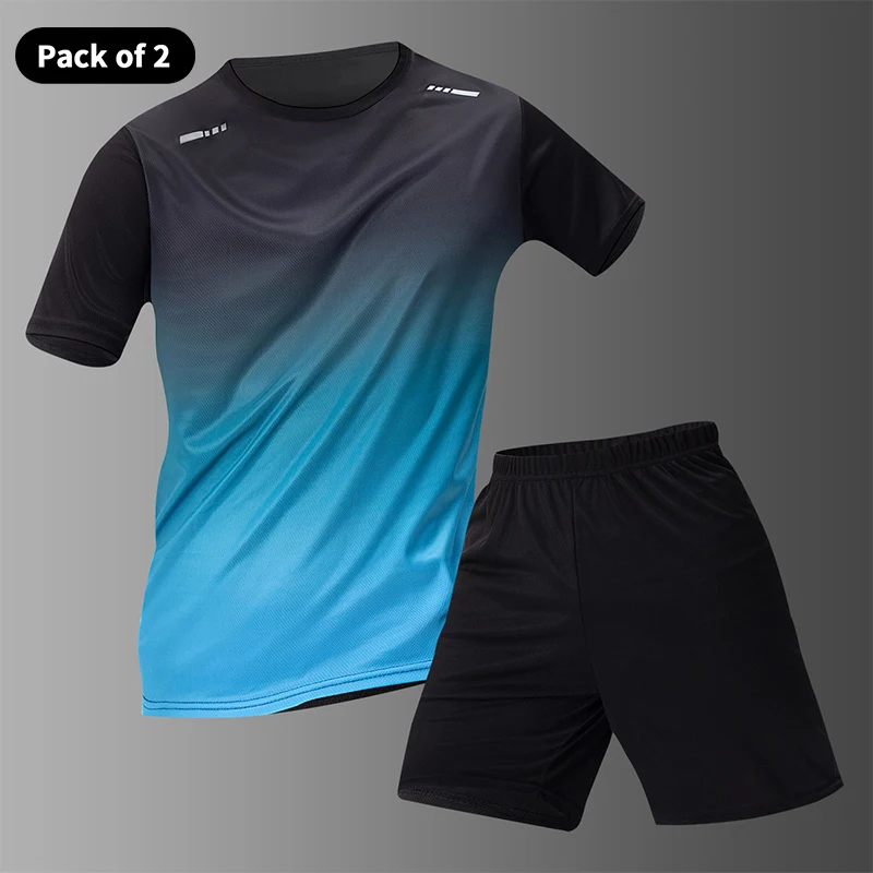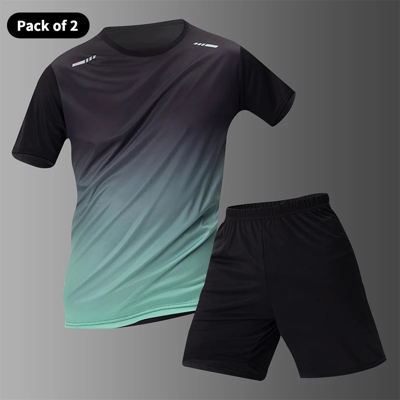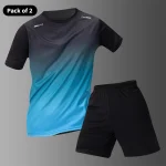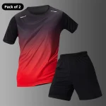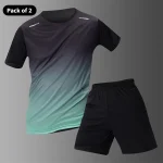 Men’s Multi-color Short Sleeved Top – Casual Running Black Shorts Set – Quick Drying